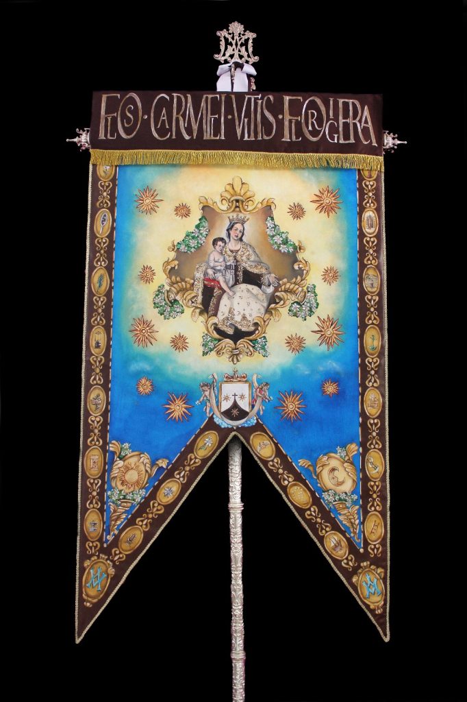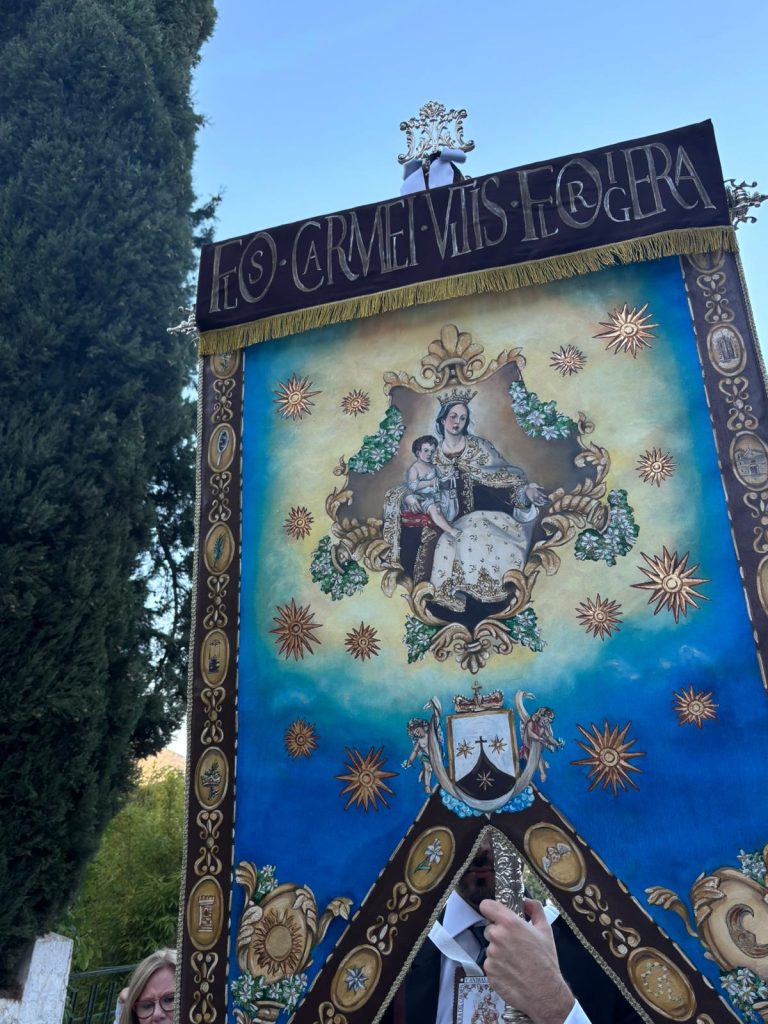 Durante la Festividad de Todos los Santos se realizó la bendición del Simpecado procesional que representará a nuestra Imagen Titular, la Santísima Virgen del Carmen. Esta obra, diseñada y pintada por el artista marteño Juan José Dorado Espinosa, fue bendecida por nuestro Director Espiritual y Párroco de San Juan Bautista, D. Antonio Lozano Marín.