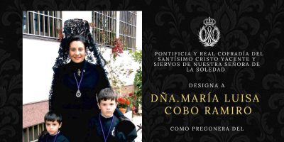 La Pontificia y Real Cofradía del Santísimo Cristo Yacente y Siervos de Nuestra Señora de la Soledad ha anunciado que el XXX Pregón Soledad será pronunciado por María Luisa Cobo Ramiro. Perteneciente al cuerpo de mantillas desde el año 2002, en 2006 se incorporó oficialmente como cofrade junto a su hijo pequeño, afianzando así su…