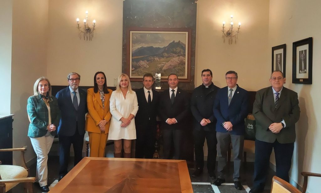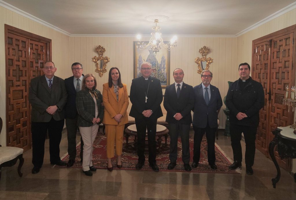 Cuando faltan menos de tres semanas para la llegada de la Semana Santa, los pregoneros de Pasión, Rafael de Vargas, y de Gloria, Marta Torres, acompañados por varios miembros de la Comisión Permanente de la Agrupación de Cofradías y por el Consiliario Jesús Millán, han realizado la tradicional visita al Obispado y al Ayuntamiento, siendo recibidos por el Obispo de Jaén, Sebastián Chico, en el primer caso y por el alcalde Julio Millán y María Espejo, como Primera Teniente de Alcalde y concejala de Cultura, en el segundo.