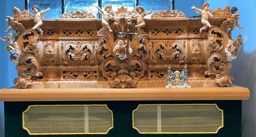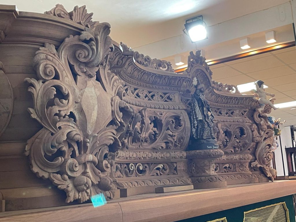 De este modo, el “galeón” del Gran Poder y Dulcenombre presenta completada la talla de la canastilla en su frontal y las dos mitades de los costeros.