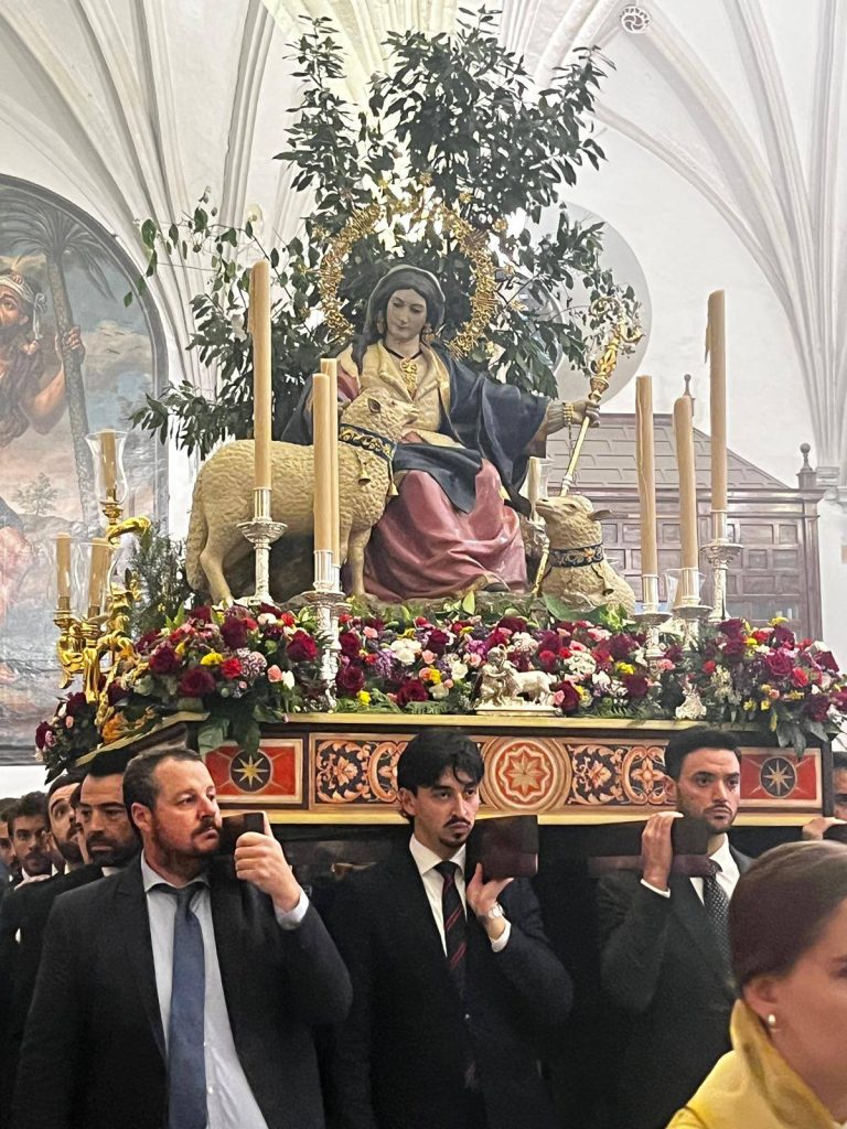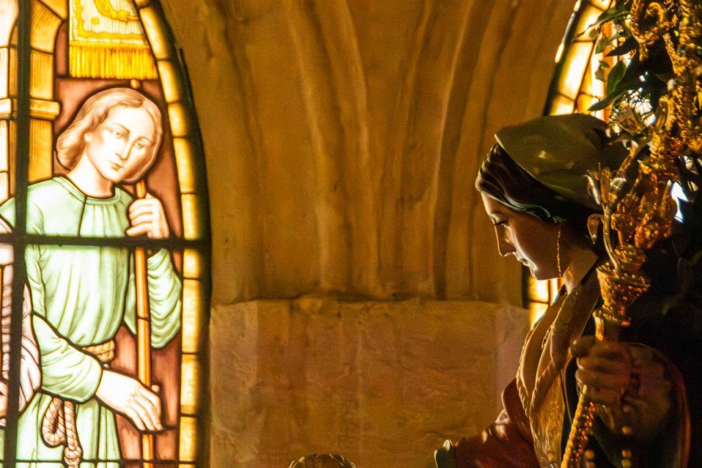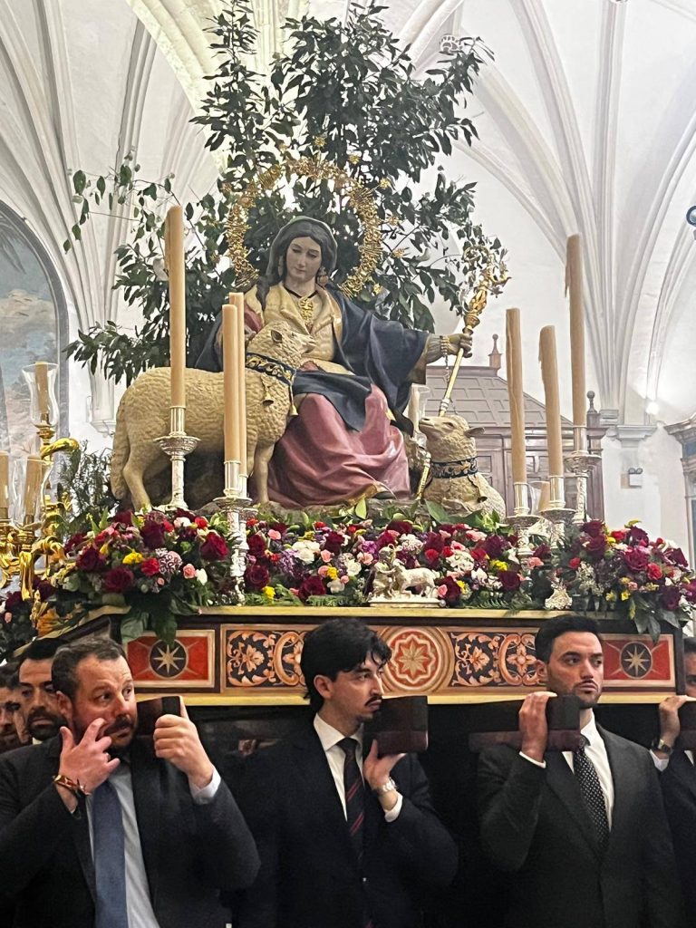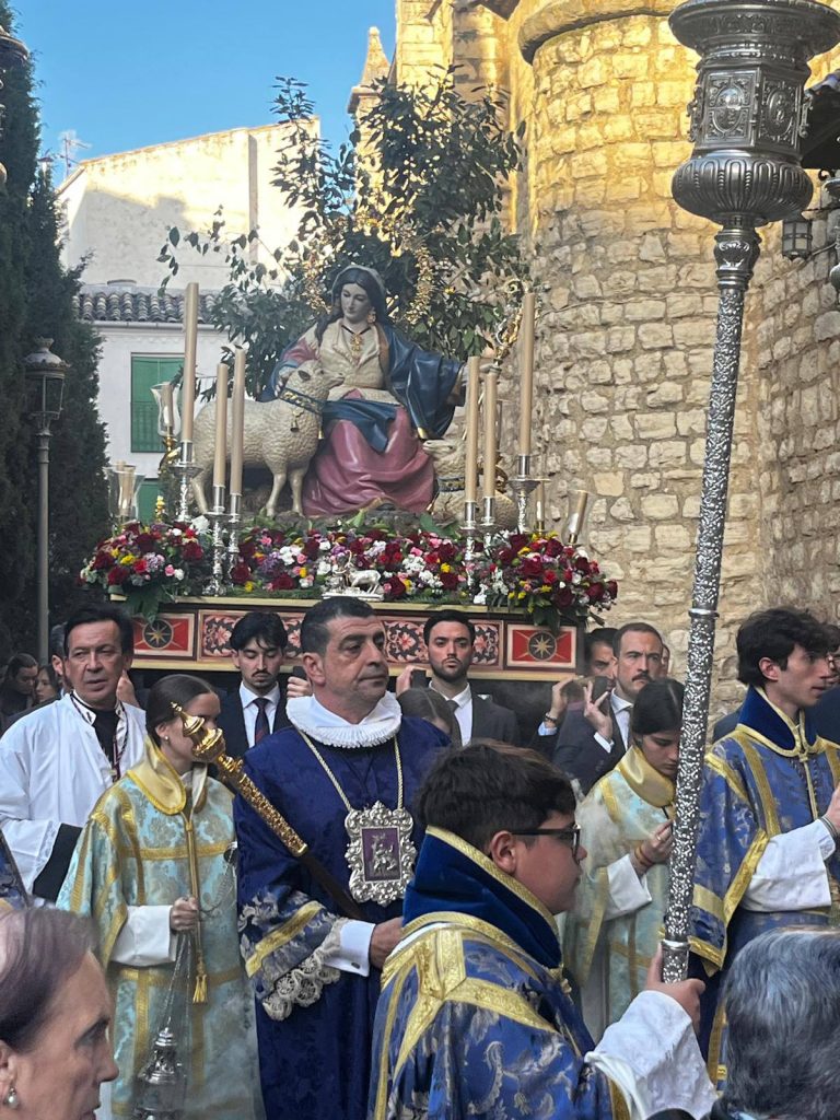 La Divina Pastora de las Almas ha presidido el Rosario Vespertino con el que la Agrupación de Cofradías de Jaén ha iniciado el Tiempo de Gloria. Las calles del barrio de San Ildefonso acogieron este rezo público en el que participaron representantes de las hermandades de Gloria y Pasión, así como miembros de los grupos jóvenes de las cofradías jiennenses.