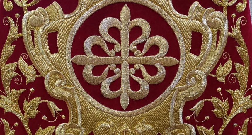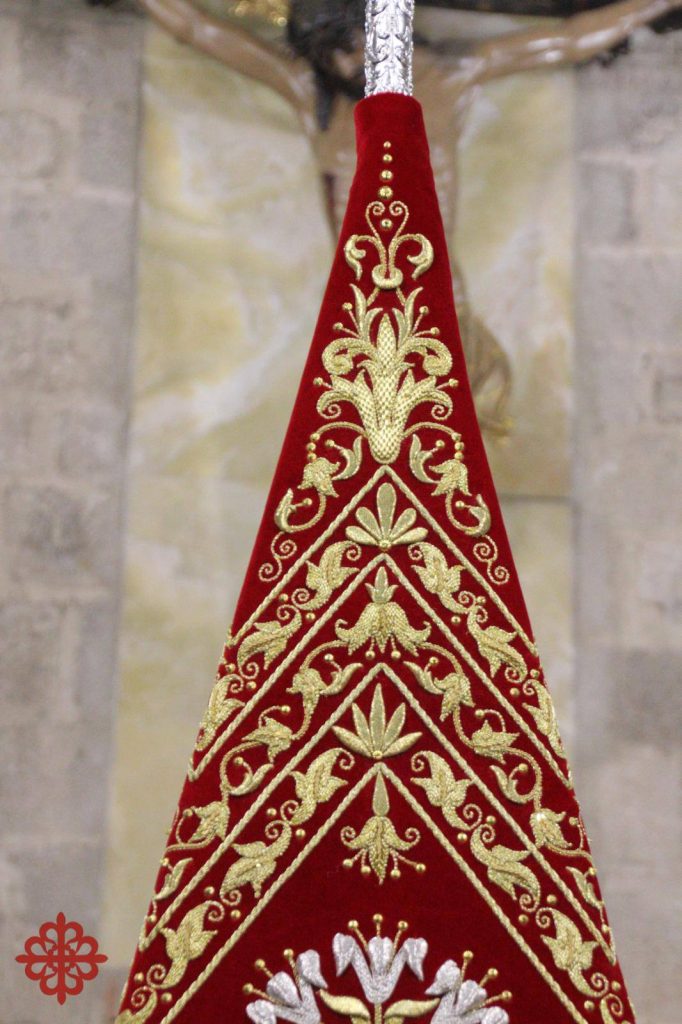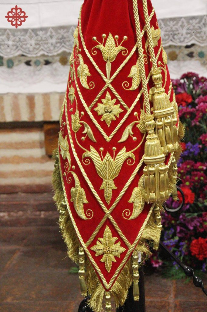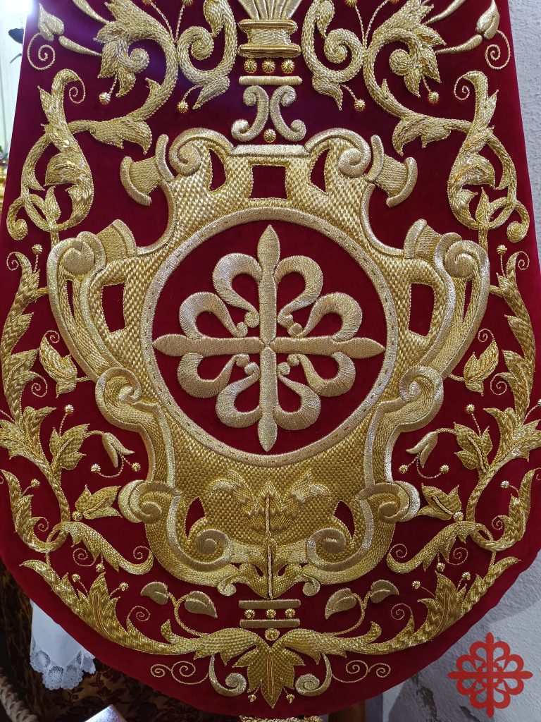 Este nuevo guion, realizado bajo diseño del propio Antonio Villar, está bordado en oro fino sobre terciopelo rojo.