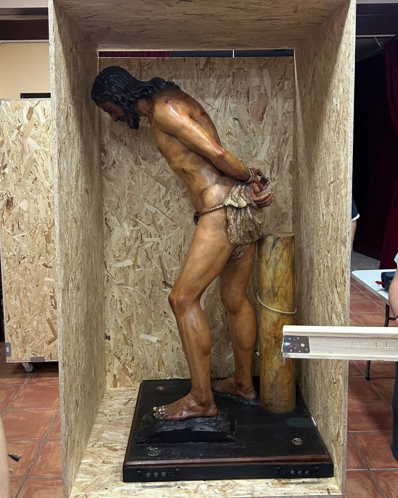 El trono y el Señor de la Columna, de Úbeda, ya están en Jaén para participar en el Rosario Magno Diocesano del próximo 4 de octubre. La Parroquia de la Inmaculada y San Pedro Pascual acoge a esta cofradía que representará el segundo misterio de los Misterios Dolorosos.