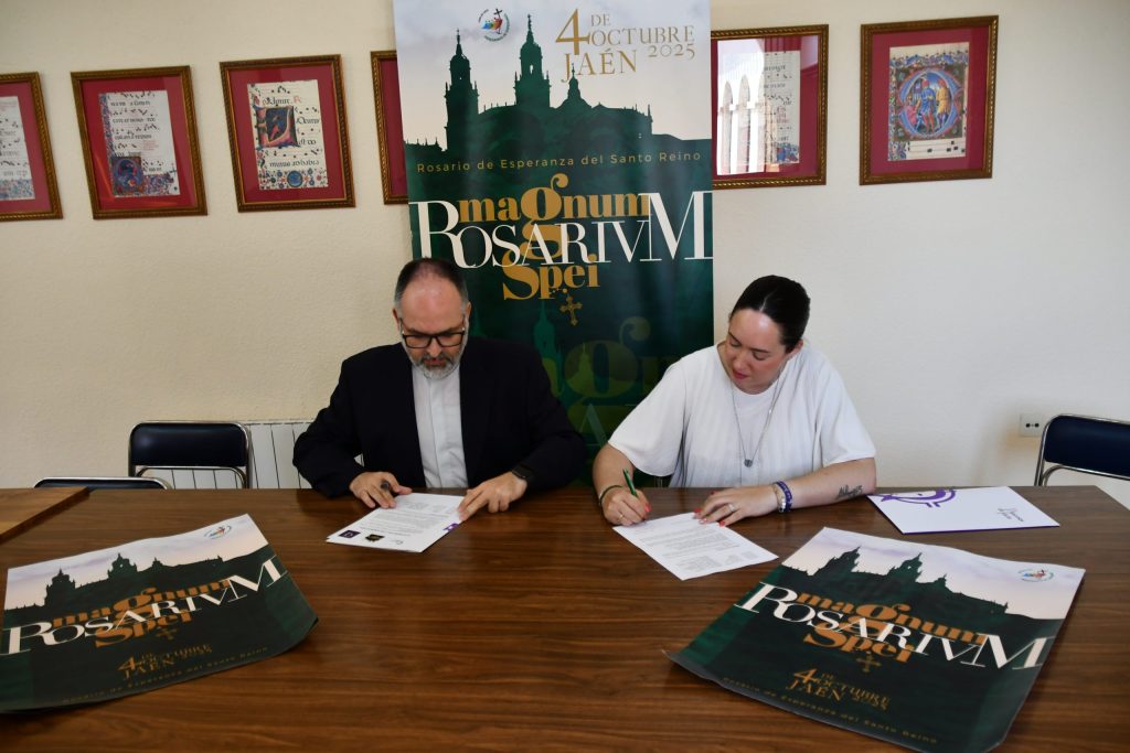 Las dependencias episcopales han acogido, esta mañana, la firma de un convenio de colaboración entre la Diócesis y el Consejo de Bandas “Ciudad de Jaén”, enmarcado en los preparativos y desarrollo del Magnum Rosarium Spei.