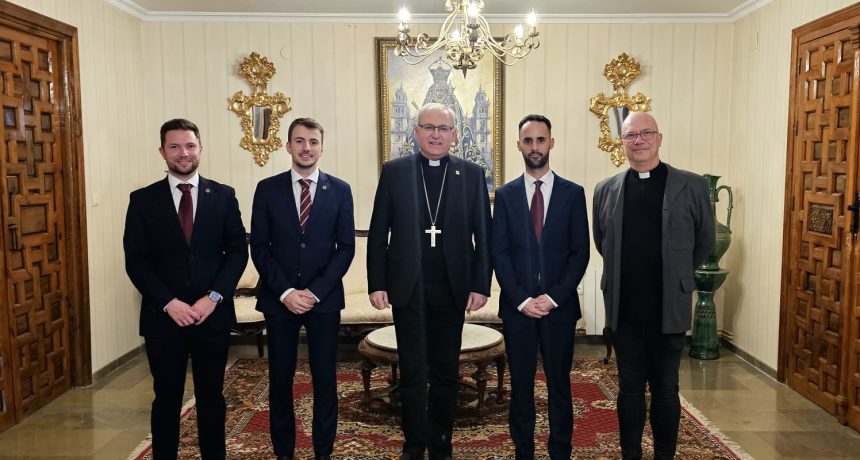 Representantes de la Hermandad de la Sentencia ha mantenido recientemente un encuentro con el Obispo, Don Sebastián Chico Martínez, con el fin de trasladarle la invitación oficial para acompañar a la corporación en su primera procesión de penitencia el próximo Lunes Santo.