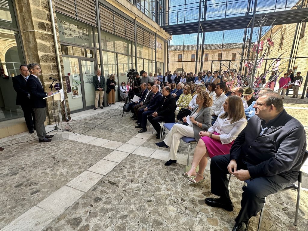 Debajo de ellos, San Andrés, su parroquia, que abre sus puertas para recibirla. Justo debajo aparece la ciudad de Baeza, plena y con la Catedral como testigo de su Coronación.